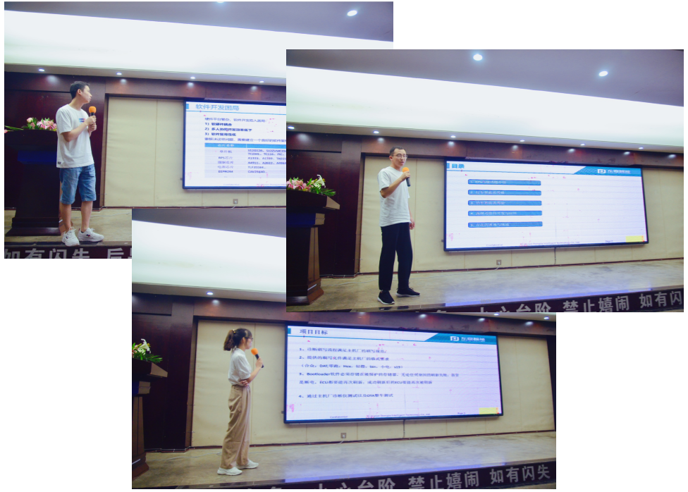各个项目汇报完毕后,由五位评审员打分,评选出了6个优胜项目进行嘉奖。获奖项目分别是:一等奖:各型号控制器替代方案开发成果项目;二等奖两个:集成式有刷电动转向管柱开发项目、电子泵开发成果项目;三等奖三个:电动四项调节转向管柱开发项目、ASPICE CL2认证项目、提升安装座组合系列批生产产能项目。