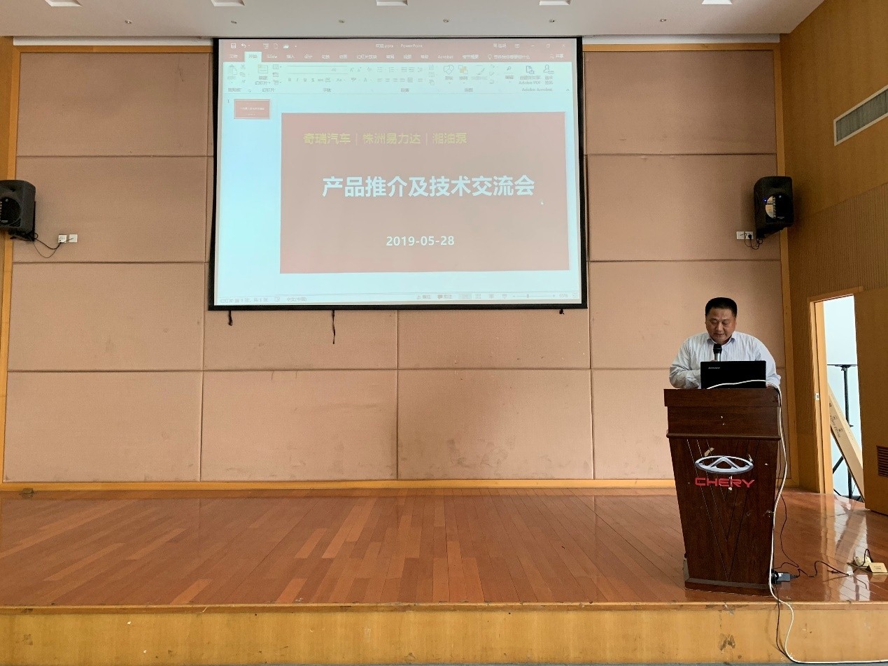 2019年5月28日,在芜湖风景如画的初夏时节,奇瑞-株洲易力达-湘油泵技术交流展在奇瑞研发中心杨子大楼东报告厅隆重举行,其中易力达由总经理带队,市场,销售,技术,研究院等共计5人,湘油泵由副总经理带队、副总工、开发等共计5人,奇瑞股份、奇瑞新能源、凯翼汽车、奇瑞商用车和特派代表等多位领导及专家均莅临现场,到场嘉宾超80人,现场交流气氛融洽,效果卓越。